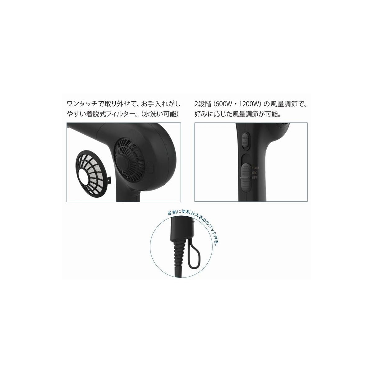 商品名:プロフェッショナルヘアドライヤーSOLID-1200 (1200W) マットブラック