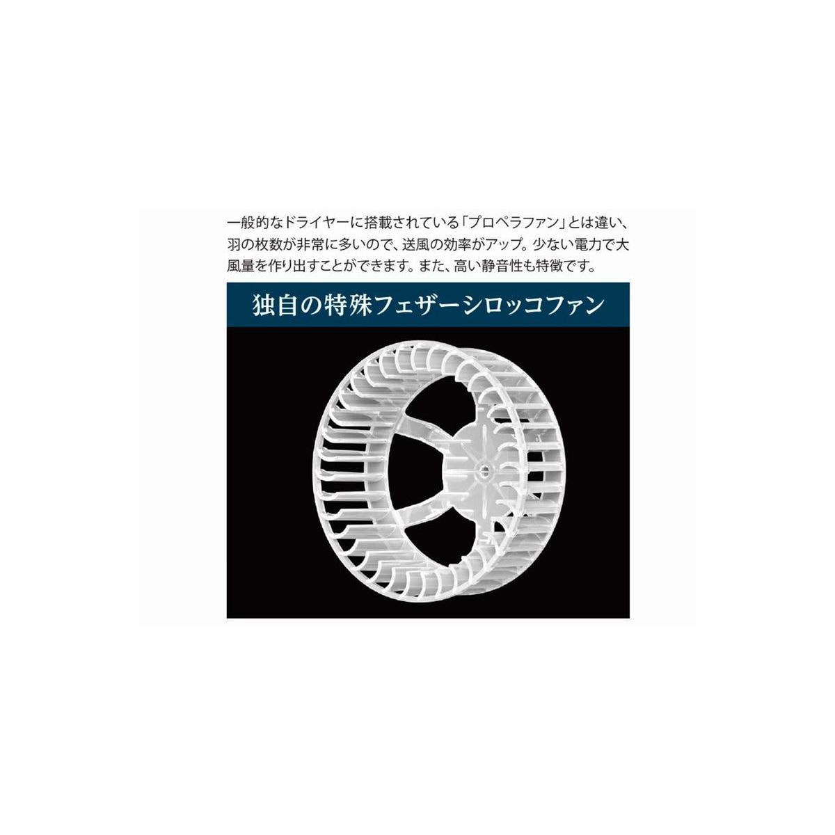 一般的なドライヤーに搭載されている「プロペラファン」とは違い、羽の枚数が非常に多いので、送風の効率がアップ。