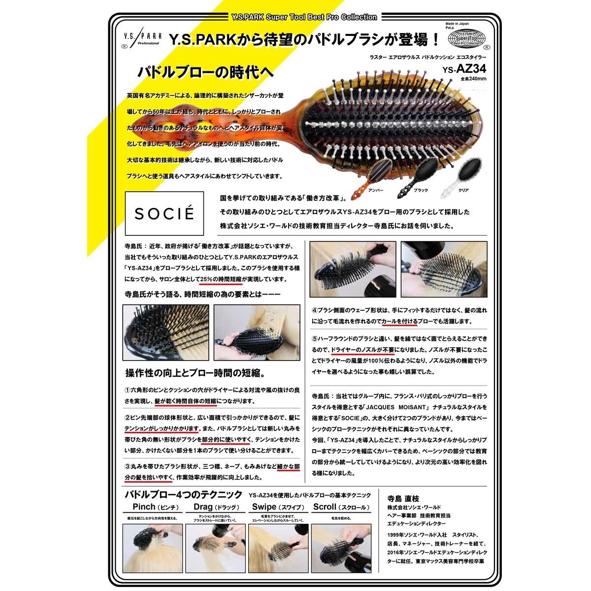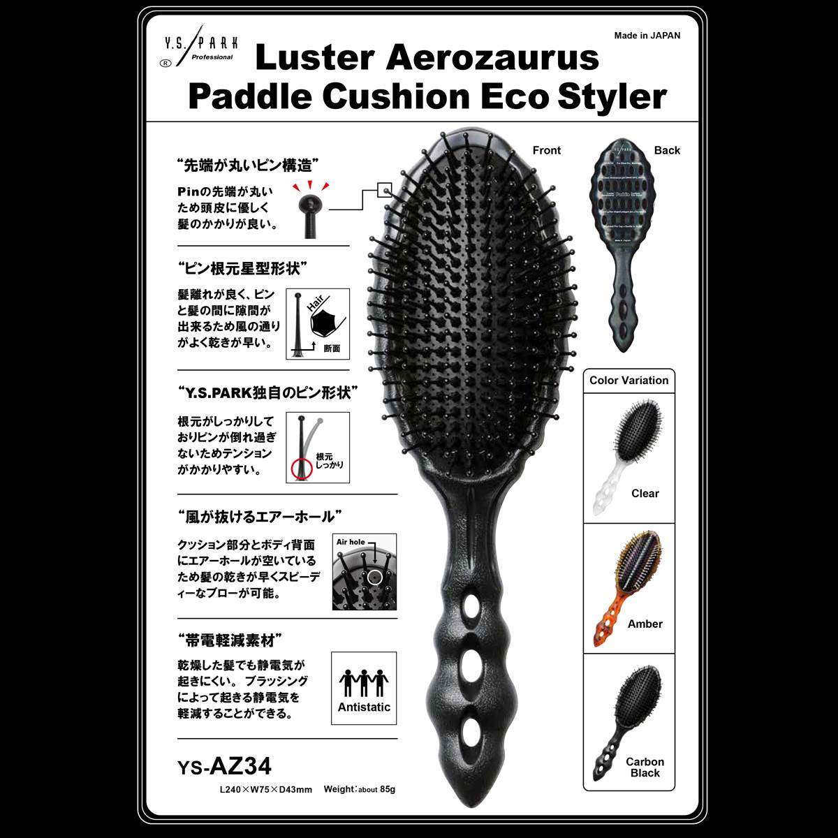 商品名:YS-AZ34 ラスター エアロザウルス パドルクッションエコスタイラー(クリア)《パドルブラシ》
