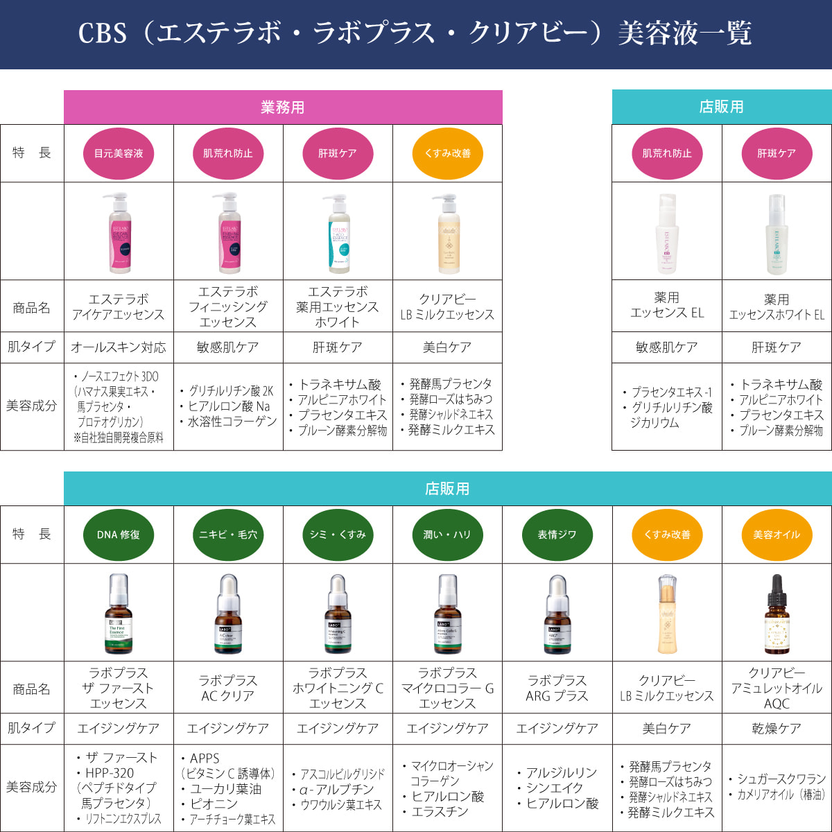 水、BG、トリ(カプリル酸/カプリン酸)グリセリル、スクワラン、ステアリン酸グリセリル(SE)、ローズヒップ油、レスベラトロール、サッカロミセス/(黒砂糖/プラセンタエキス)発酵液(ウマ)、グルコノバクター/ハチミツ発酵液、乳酸桿菌/ブドウ果汁発酵液、乳酸桿菌/乳発酵液、ヒトオリゴペプチド-1、リノール酸レチノール、ビオチン、パルミチン酸アスコルビルリン酸3Na、トコフェロール、ダイズ油、オレンジ果皮油、ラベンダー油、イランイラン花油、ビターオレンジ花油、レシチン、クエン酸Na、リン酸Na、水添ポリイソブテン、ポリソルベート60、ラウレス-7、エタノール、グリセリン、ポリアクリルアミド、カプリリルグリコール