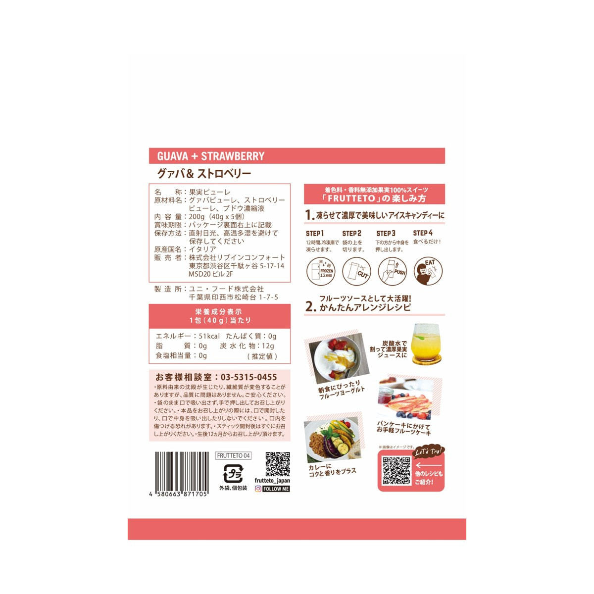 商品名:Frutteto(フルッテート)グァバ&ストロベリー 40g×5個入