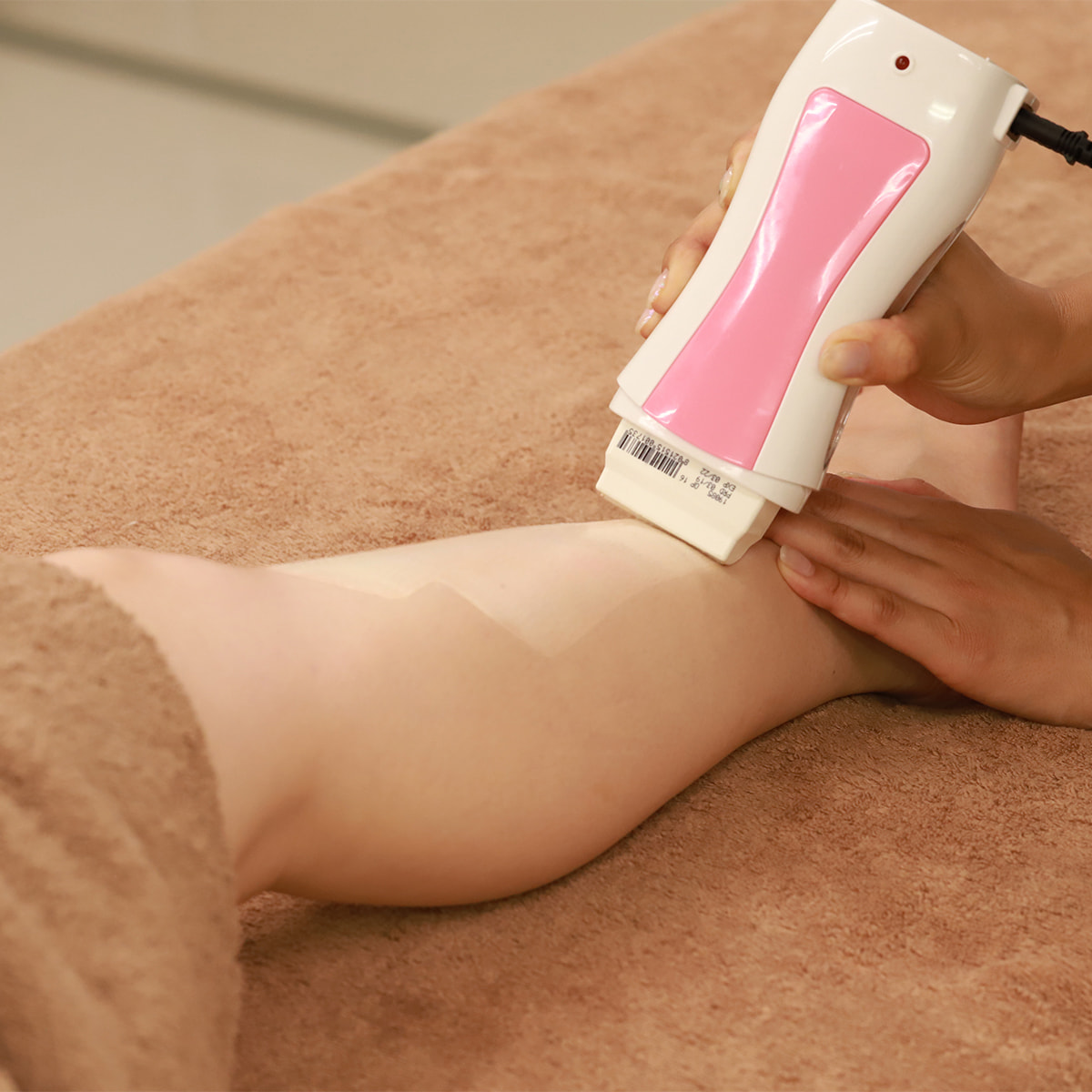 ③施術したい部位をプレワックスジェルで清潔にし、ティッシュオフして水分を除去する。