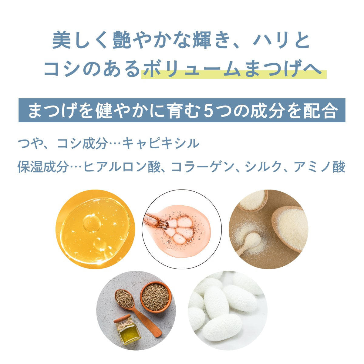 キャピキシル、ヒアルロン酸、コラーゲン、シルク、アミノ酸