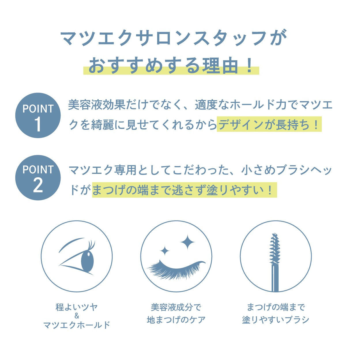 ビューラーによって傷んだまつげを『美しく艶やかな輝き、ハリとコシのあるボリュームまつげ』