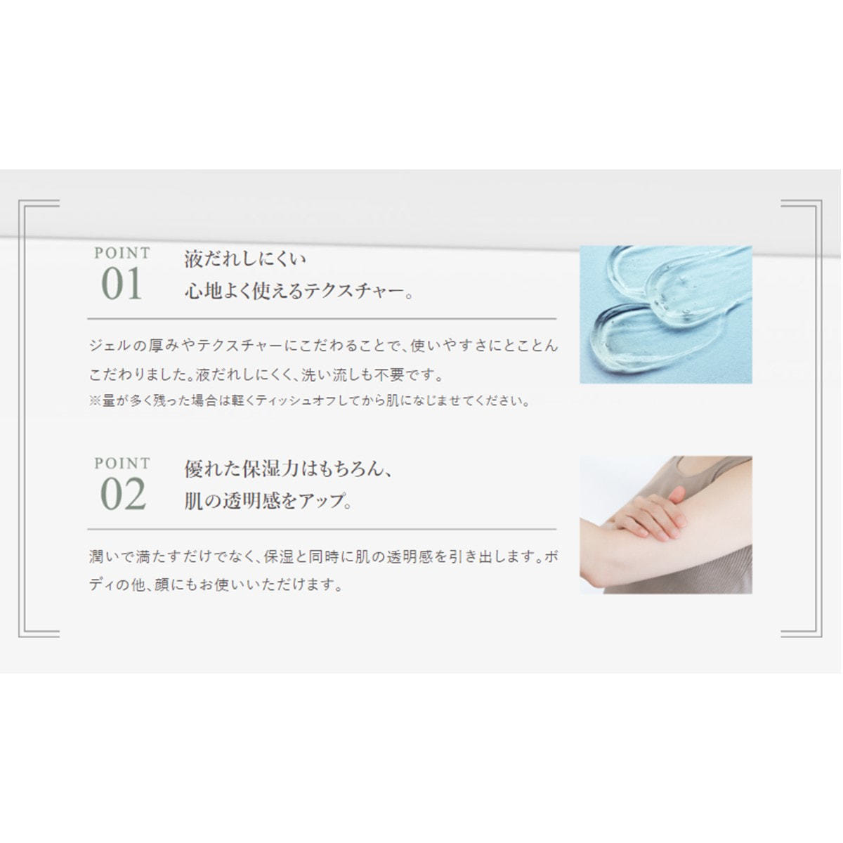 全身を潤いで満たす保湿力と、同時に透明感を引き出すのが特徴です。