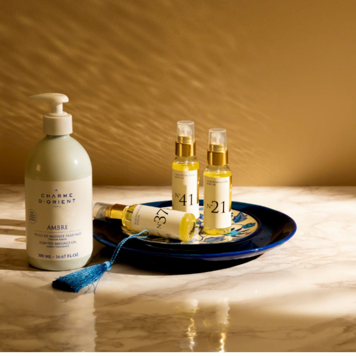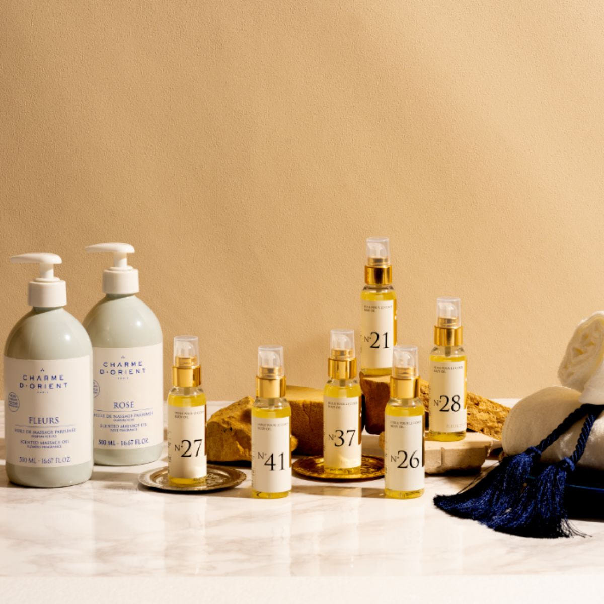 「ハマム」とはトルコやアラブ諸国など中東全域、中央アジア諸国、東アジア諸国に広く見られる伝統出来な公衆浴場のことです。乾燥の強い地域に根付いた文化で、浴室は通常「蒸し風呂」で浴槽からのぼった蒸気で汗を出し、あかすり師によるあかすりやマッサージが受けられ、古くからその地方の美容と健康を支える存在でした。そのマッサージで使用するオイルはどれも濃厚で香りへの強いこだわりがありました。その「ハマム」で発達した文化を伝えるために、ルーツをモロッコにもつYasmina氏と息子のSofiane氏によって1998年フランスで誕生したのがCHARM D’ORIENTです。