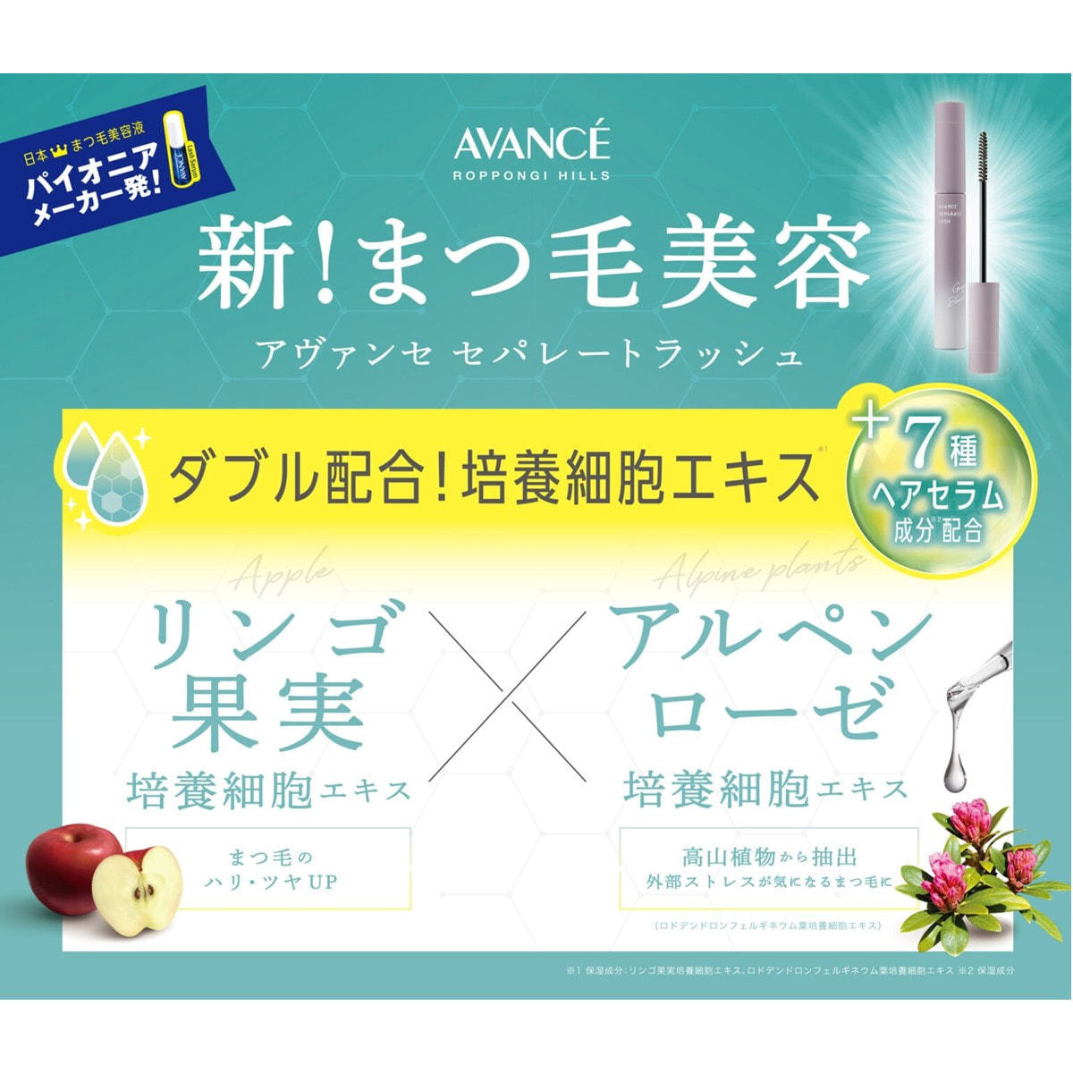■メイクしながらまつ毛ケアを叶える、ダブル培養細胞エキス※1と7種類のヘアセラム成分※2が配合