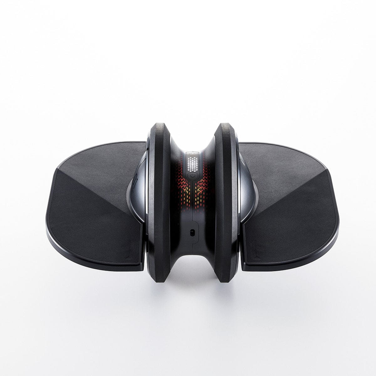 ハイブリッドトレーニング理論に基づき、足を前後に動かす動作とEMSを組み合わせたEMSフットローラー。