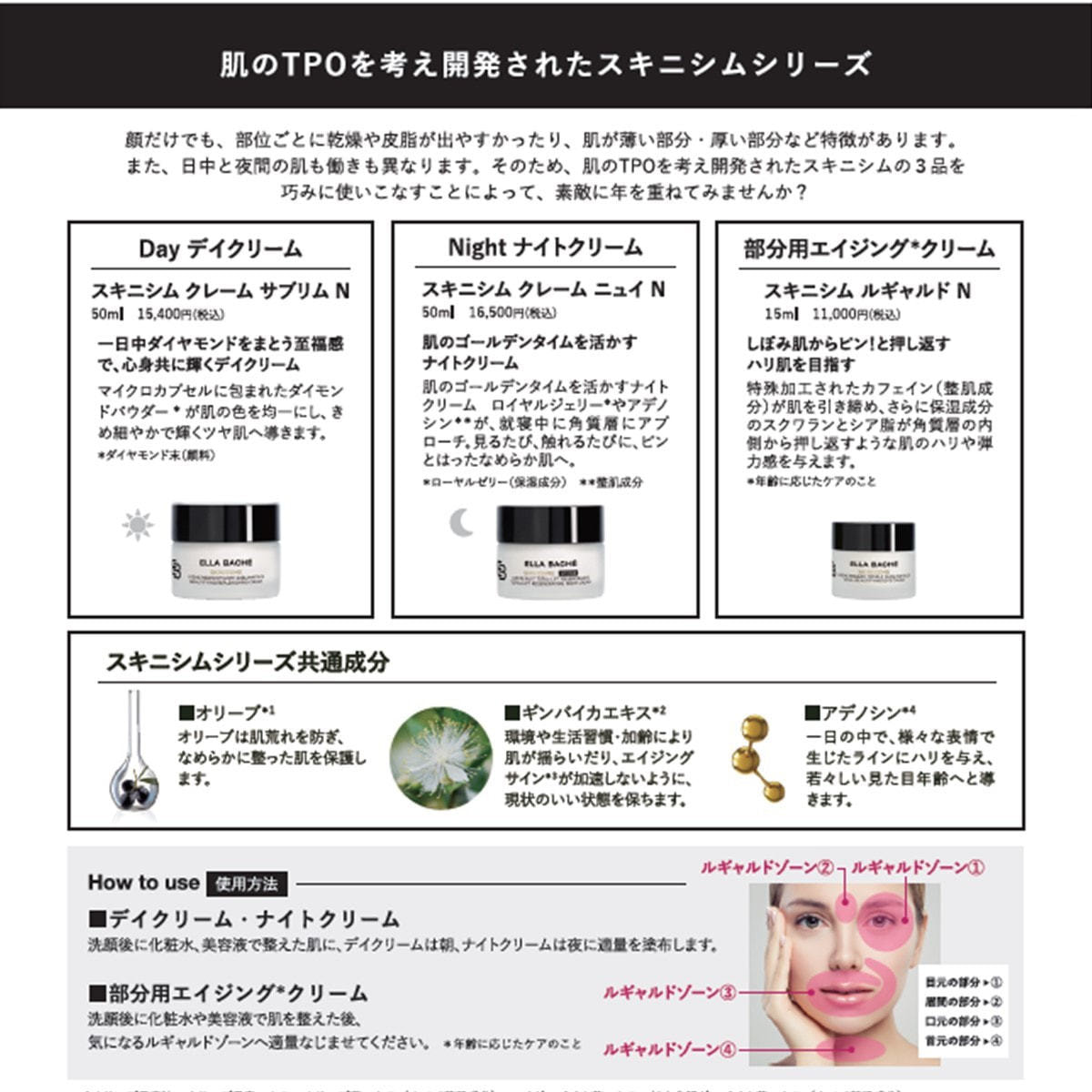 そのため、肌のTPOを考え開発されたスキニシムの3品を巧みに使いこなすことで若々しい見た目年齢へと導きます。