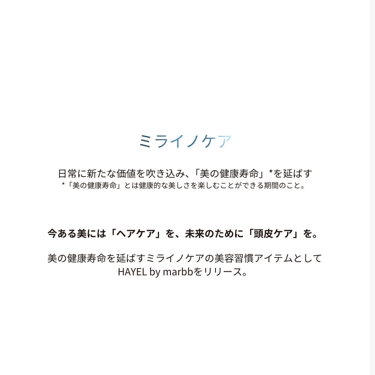 独自技術"HAYEL TECNOLOGY"で浸透力UP 水溶性有効成分を効率的に角層と親和させる独自技術 美の健康寿命を延ばすミライノケアの美容習慣