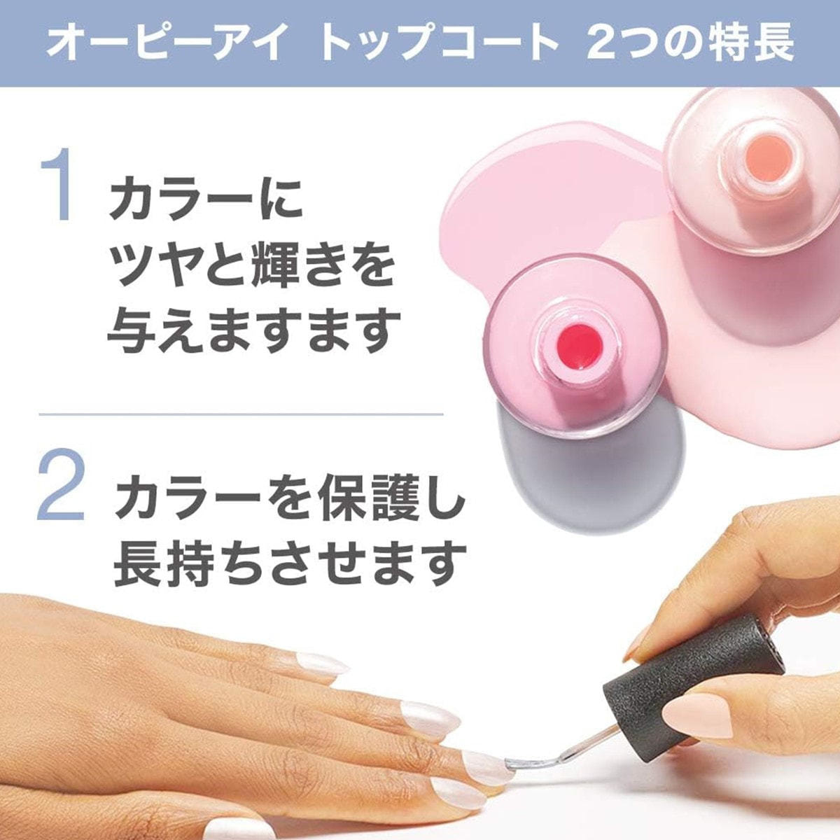 ベースコートは、自然爪への色素沈着を防ぎ、ネイルカラーとの密着性を高め、カラーを長持ちさせます。
