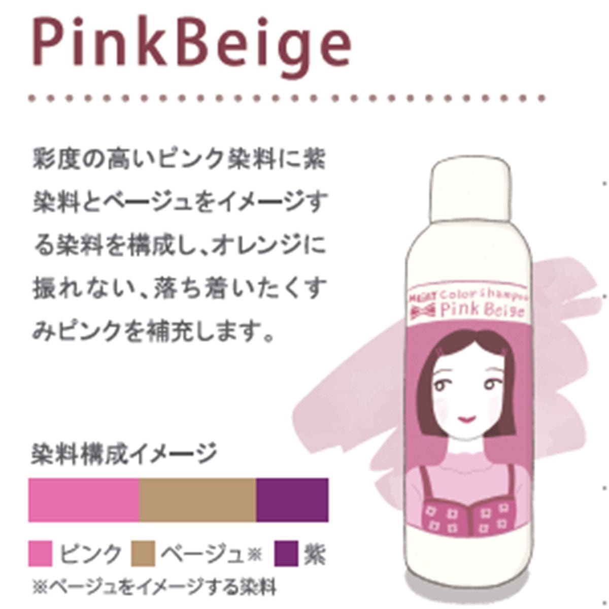 彩度の高いピンク染料に紫染料とベージュをイメージする染料を構成し、