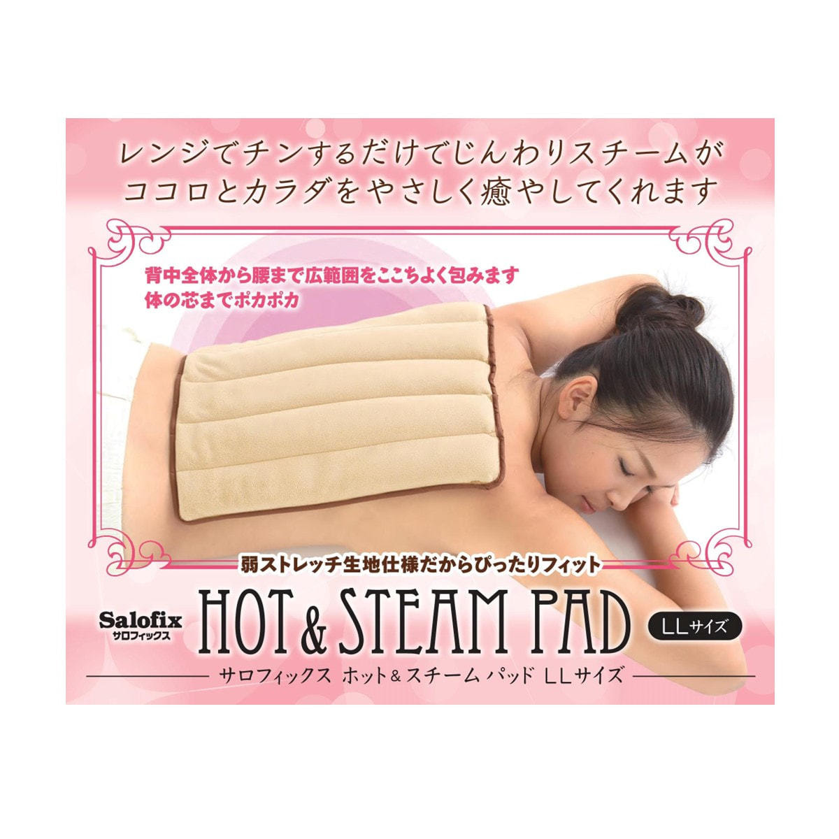 弱ストレッチ性の大判A3サイズの生地が心地よく包みこみ、じんわり温かなスチームでココロとカラダをやさしく癒してくれます。