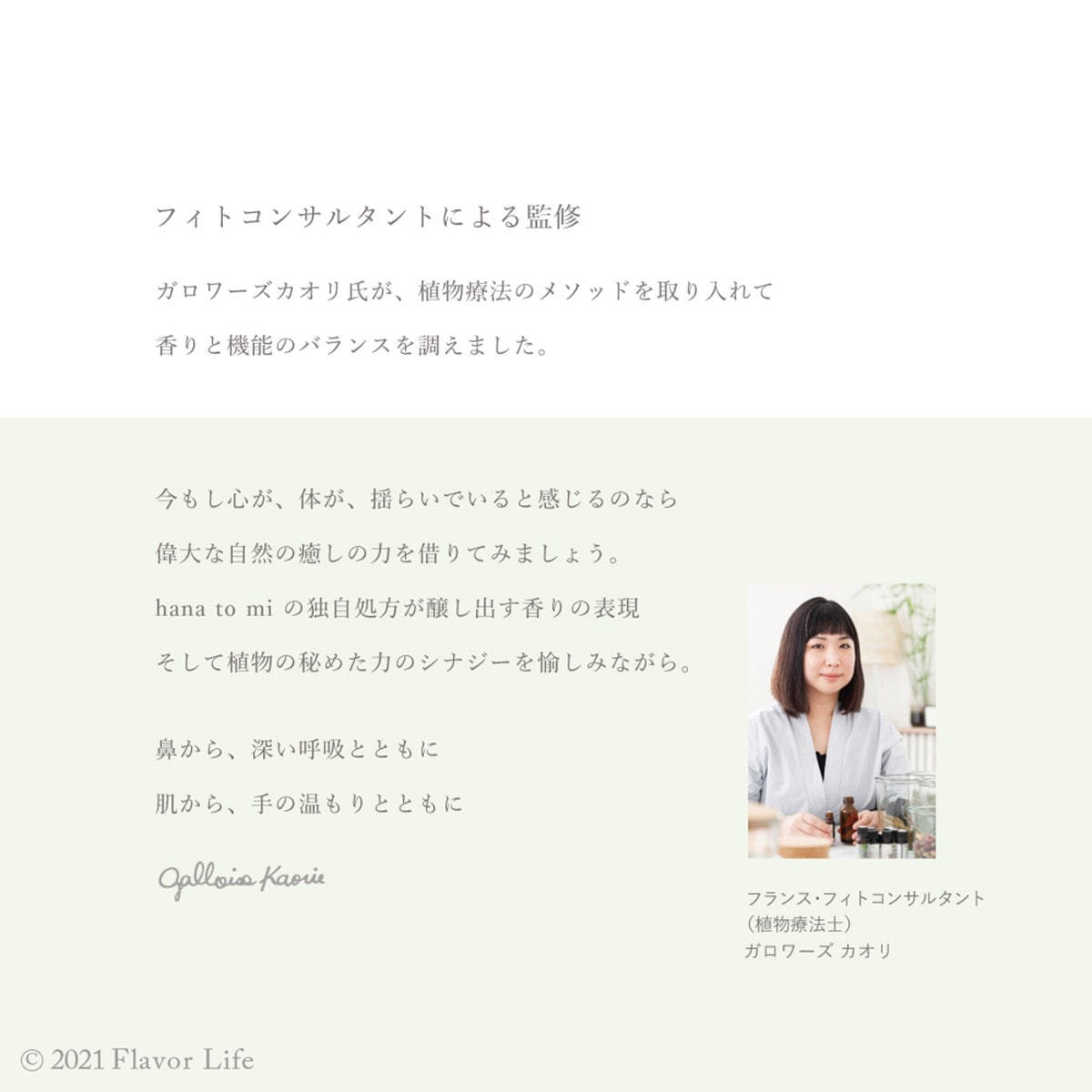和精油と洋精油の恵みを融合したホリスティックアロマブランド『hana to mi』。