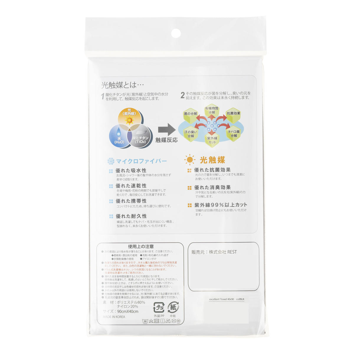 「エクセレントタオル」は、抜群の吸水性をもつマイクロファイバーに光触媒加工を施したタオルです。