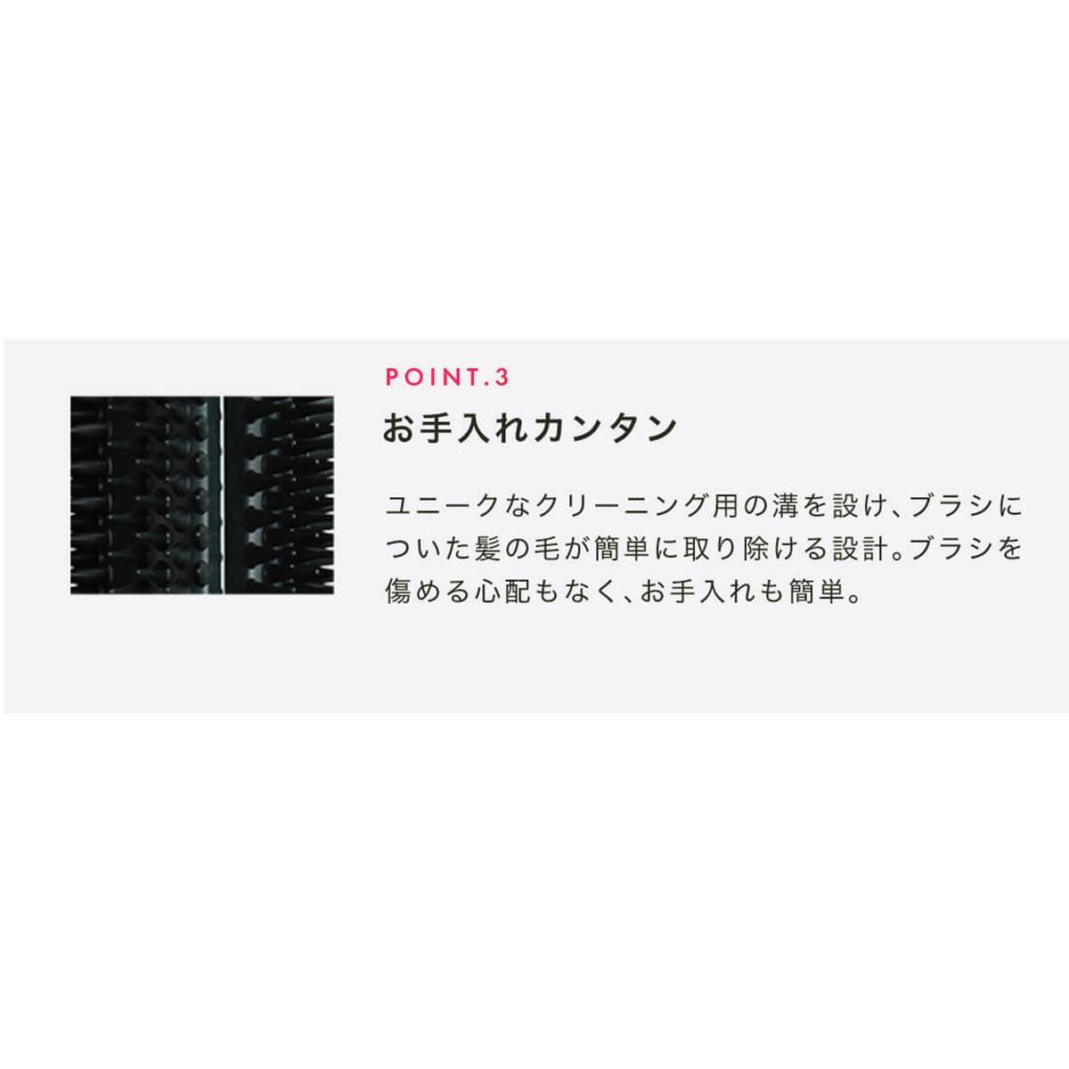 また、交互に並んだブラシ構造により、髪の毛が直線的にブラシを通るのではなく曲線を描くので、1度のブローですばやく乾かすことができます。