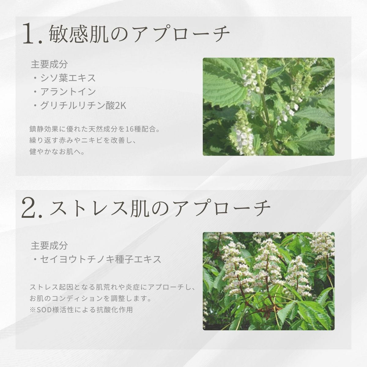 22種類の天然植物由来成分をたっぷりと配合し、注目のエイジング成分もプラス。