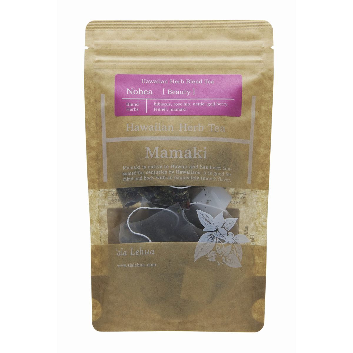 ハワイアンハーブのママキと世界各地のハーブをブレンドしたハーブティーで自然のティーカラーが特徴です。