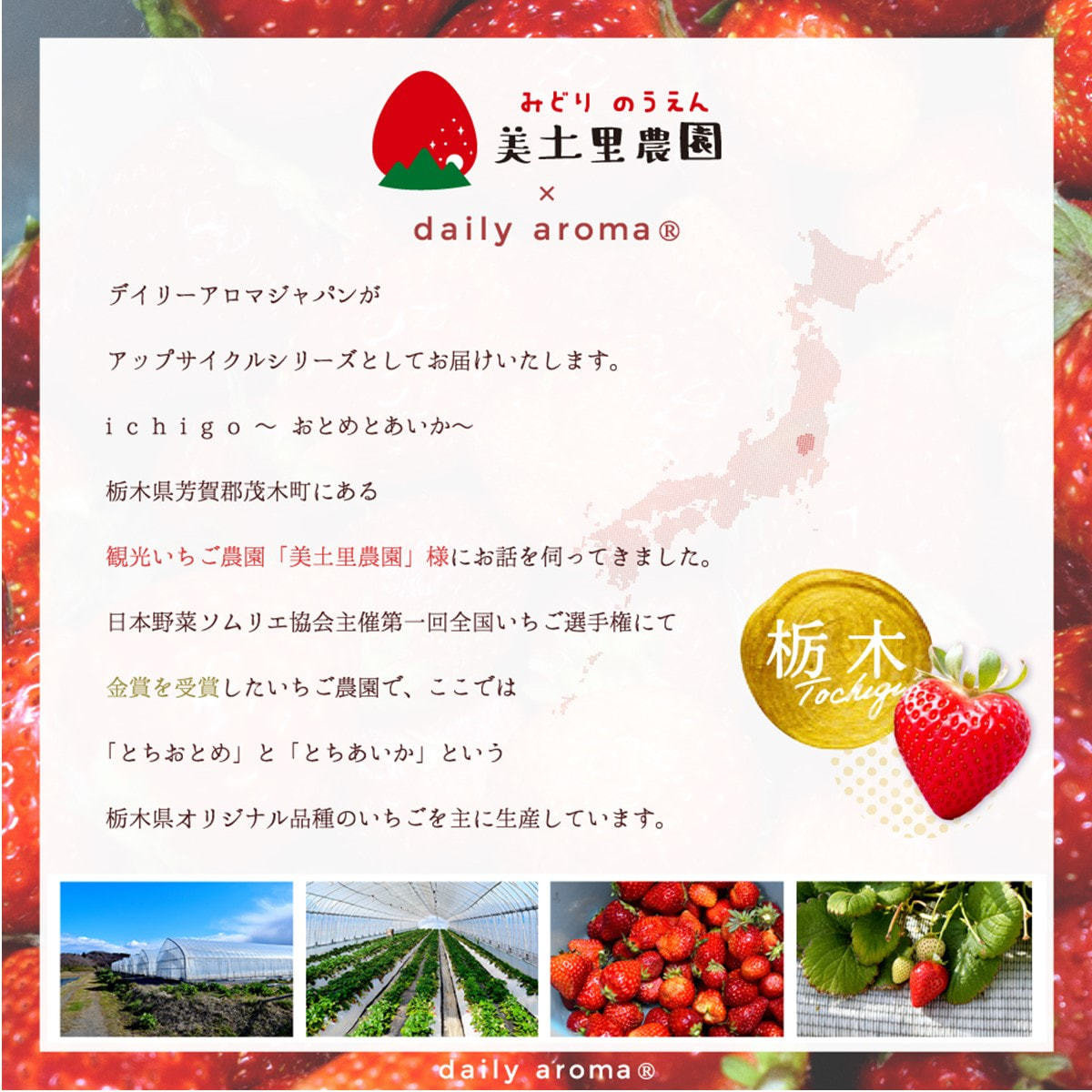 廃棄になってしまういちごから独自に美容成分「栃木イチゴ果実エキス※2」を抽出配合。