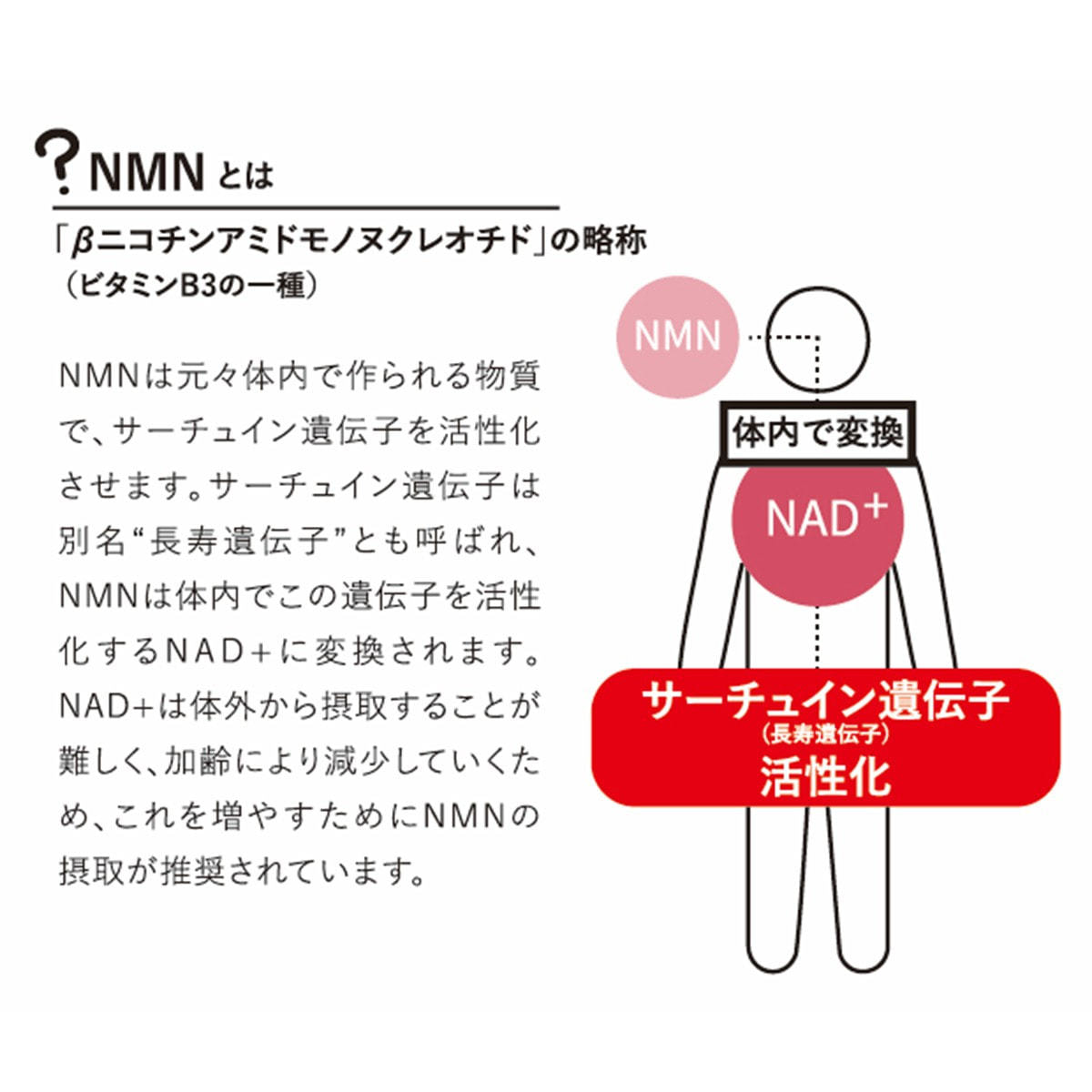 NMN=βニコチンアミドモノヌクレオチド(ビタミンB3(ナイアシン)の一種)