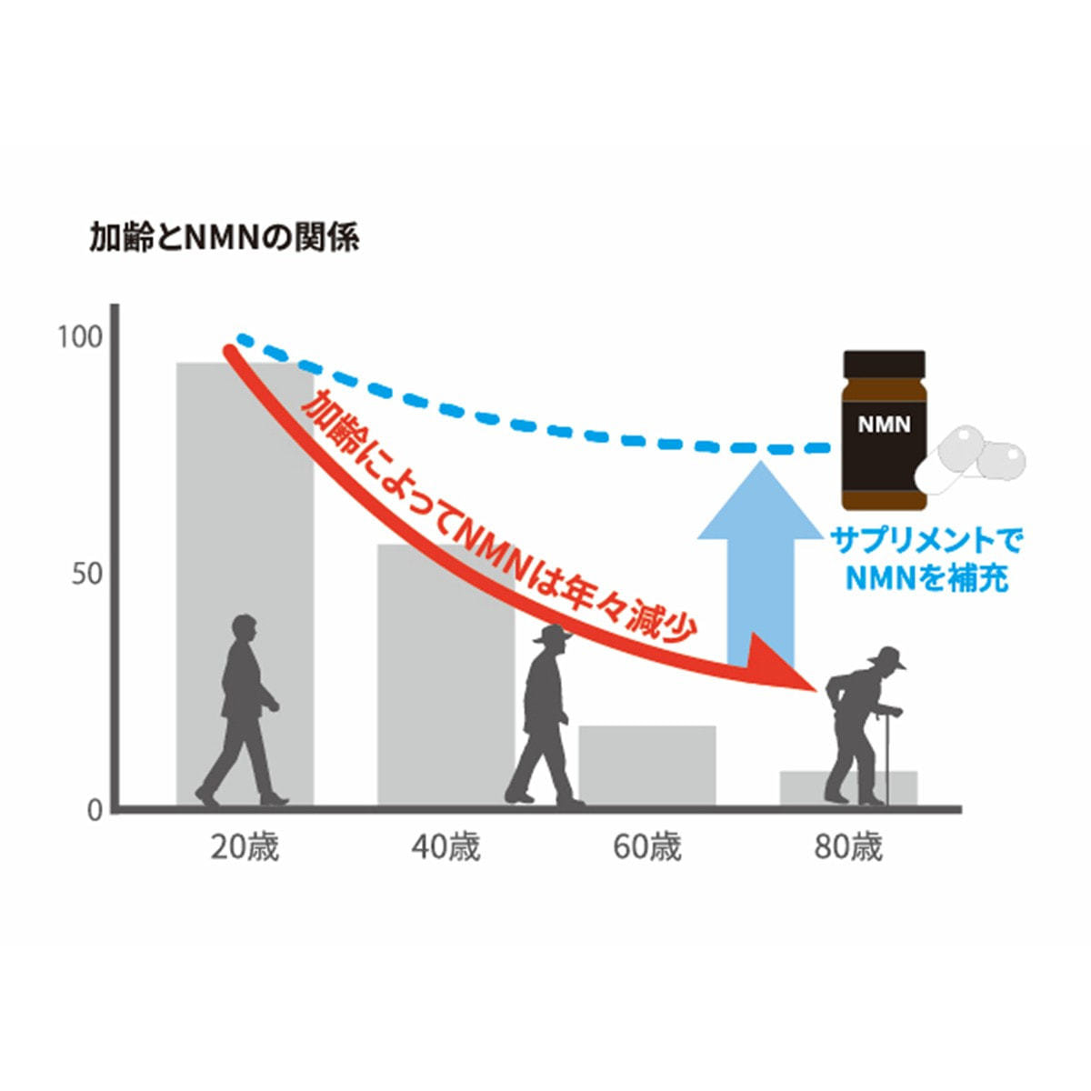 NAD+は体内から接種することが難しく、加齢により減少していくため、これを増やすためにNMNの摂取が推奨されています。