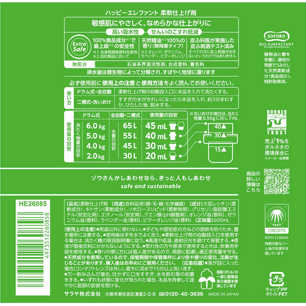 商品名:ハッピーエレファント 液体柔軟仕上げ剤 600ml