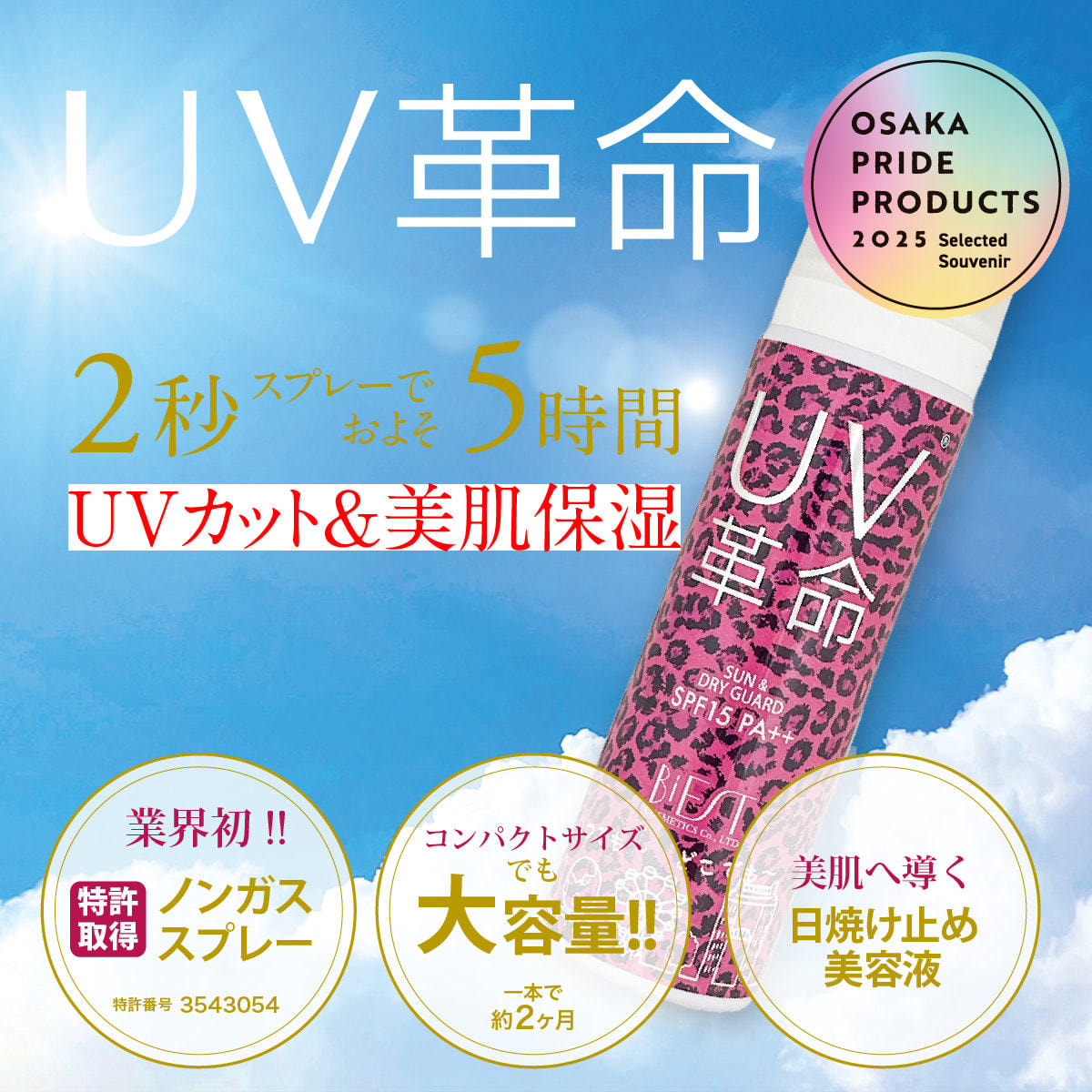 2秒スプレーでおよそ5時間UVカット&美肌保湿