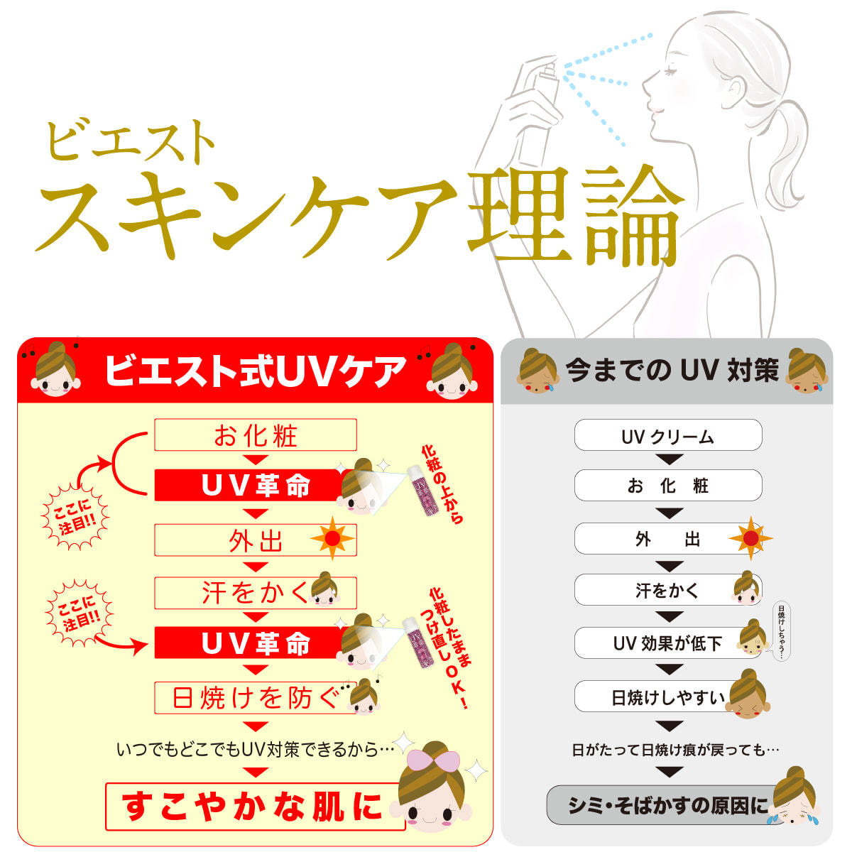 化粧したまま、つけ直すことが可能だから、「UV革命」はできるだけ肌に負担をかけないSPF15で設定しています。