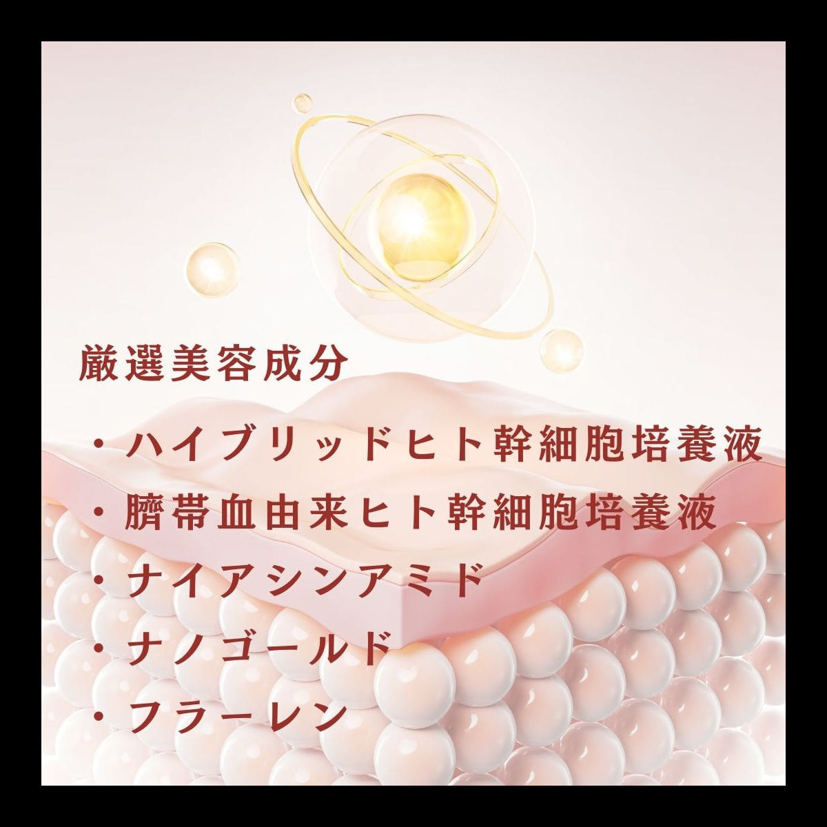 水、プロパンジオール、ペンチレングリコール、1,2―ヘキサンジオール、BG、ベタイン、グリセリン、ナイアシンアミド、アルギニン、(アクリレーツ/アクリル酸アルキル(C10-30))クロスポリマー、αーアルブチン、ヒアルロン酸Na、アスコルビルリン酸Na、ヒメフウロエキス、ローマカミツレ花油、エチドロン酸4Na、加水分解シルク、アスコルビルグルコシド、ヒトサイタイ血幹細胞順化培養液、水溶性プロテオグリカン、アーチチョーク葉エキス、クオタニウム―73、PVP、金、スーパーオキシドジスムターゼ、トロメタミン、チャ葉エキス、リンゴ果実エキス、サクシノイルアテロコラーゲン、フラーレン、リンゴ果実培養細胞エキス、レシチン、ガゴメエキス、ヒト幹細胞順化培養液、トリ(カプリル酸/カプリン酸)グリセリル、ポリソルベート80、カプリリルグリコール、酢酸トコフェロール、アスコルビルメチルカルボニルペンタペプチド―72-トリーtーブチルトリプトファナミド、水添レシチン、カラメル、マイカ、酸化チタン、酸化鉄、キサンタンガム、フェノキシエタノール