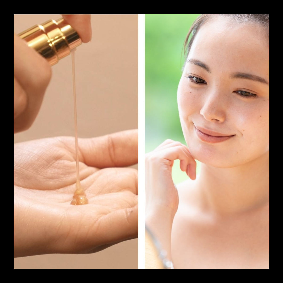 3プッシュ程度手に取り、顔全体に塗布します。塗布後ハンドラッピングにて浸透を促します。