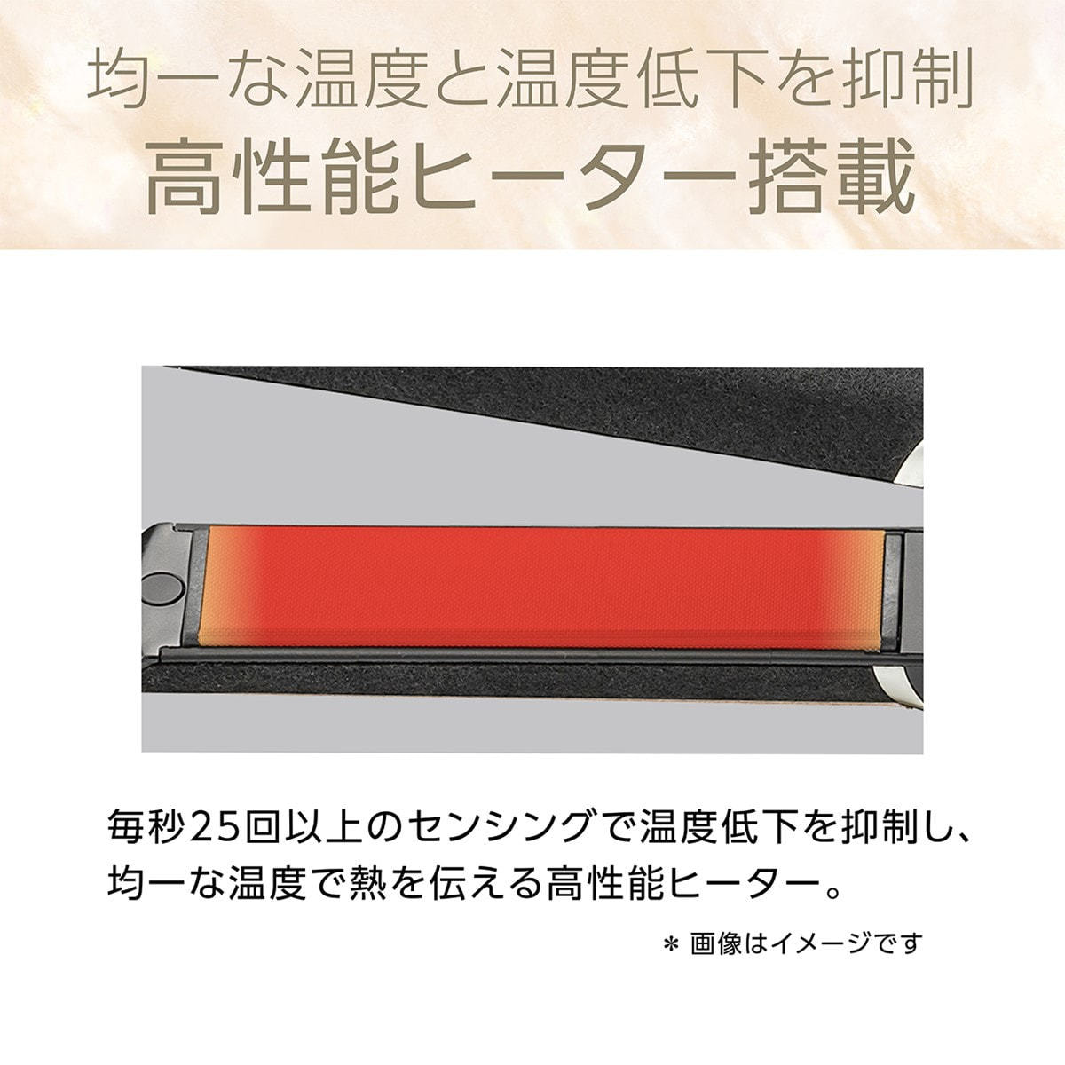 プレート素材が水分の蒸発を抑えてうるおいをキープ。熱ダメージから髪を守ります。