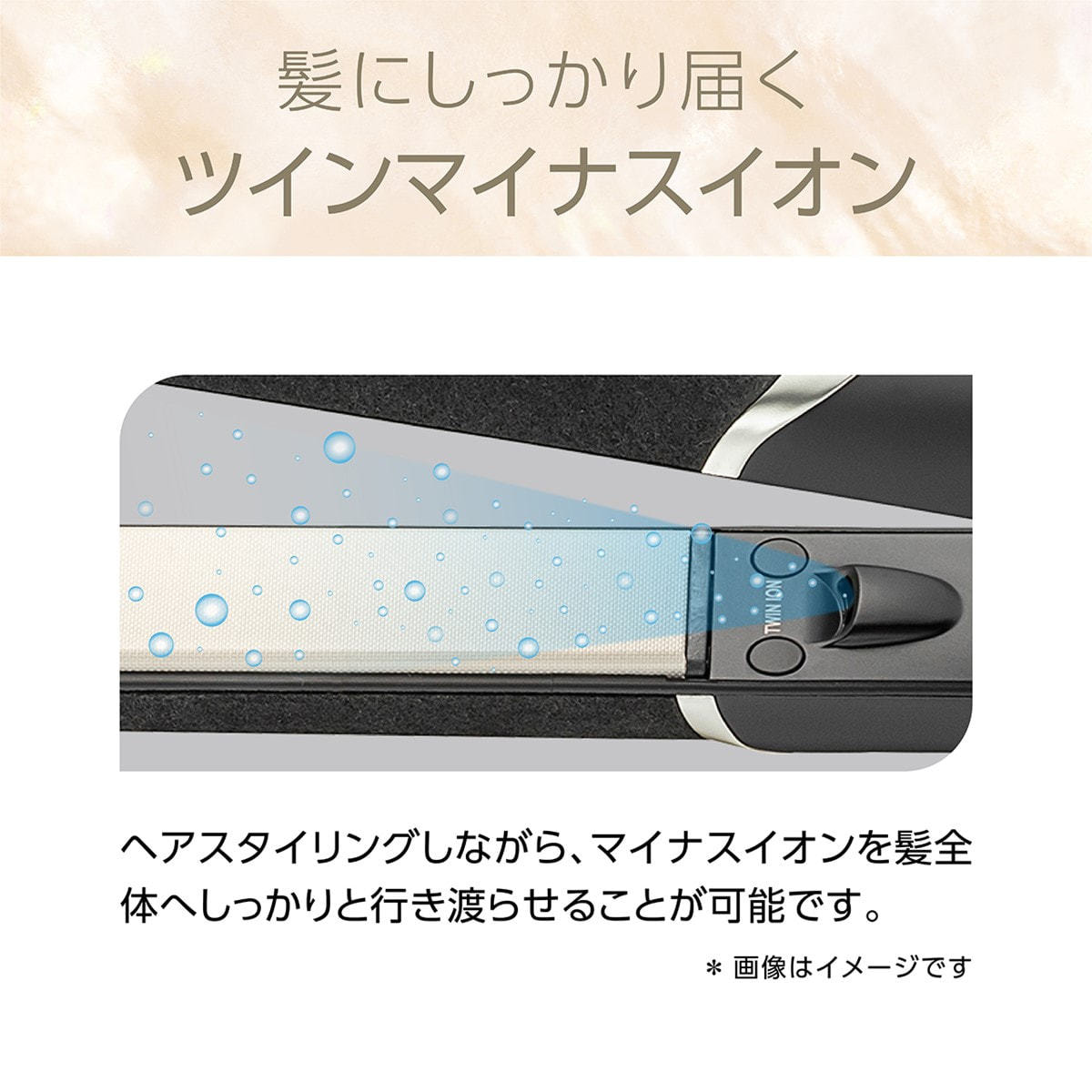 吹き出し口からマイナスイオンを発生。 スタイリングしながら髪へしっかりと行き渡らせます。