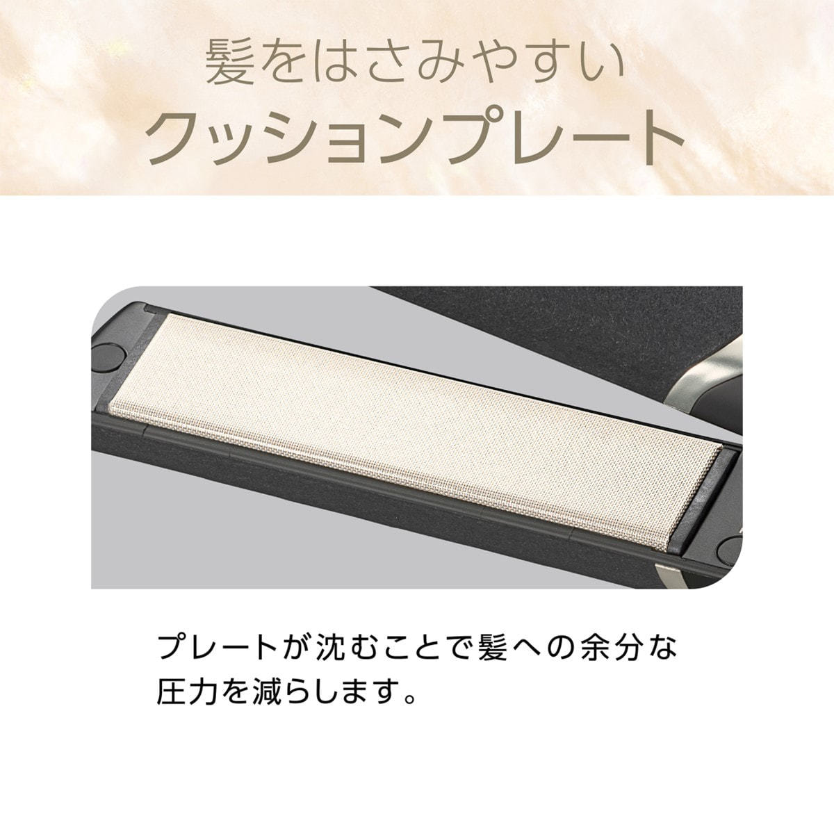 プレートが沈むことで髪への圧力を軽減します。