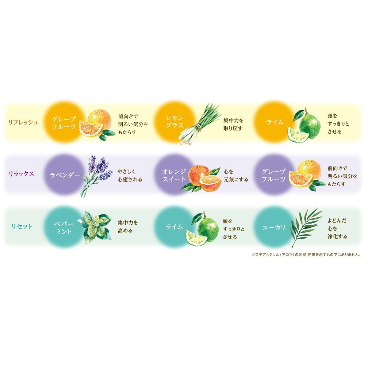 ▶爽やかな柑橘系の香り、やさしいラベンダー系の香り、すっきりとしたミント系の香りがあります。