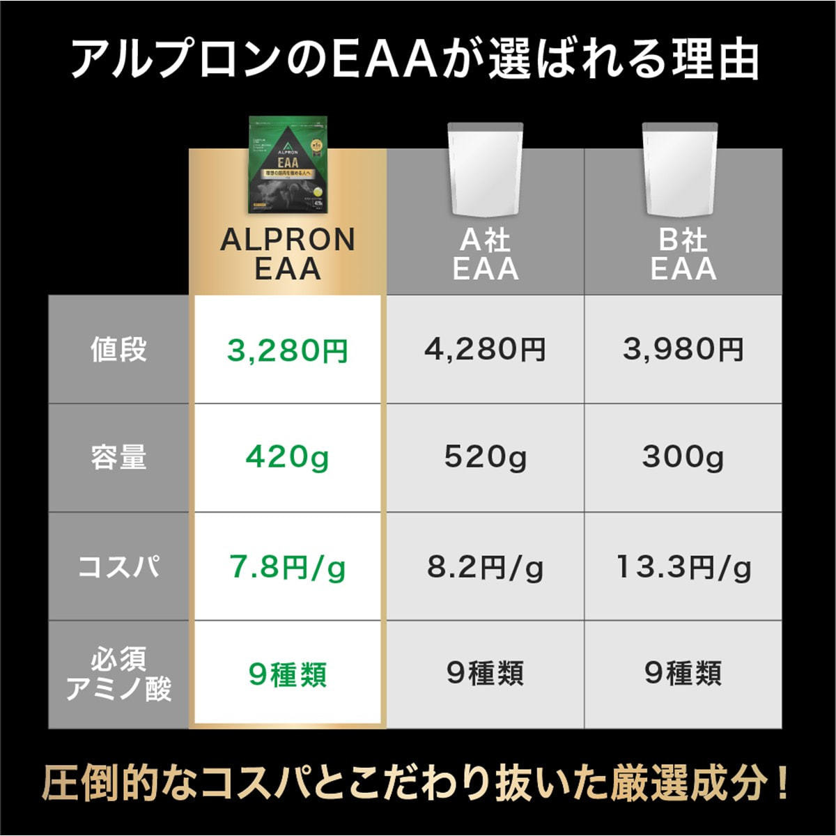ALPRON PRO EAAは、必須アミノ酸9種類をバランスよく配合したEAAサプリメントです。