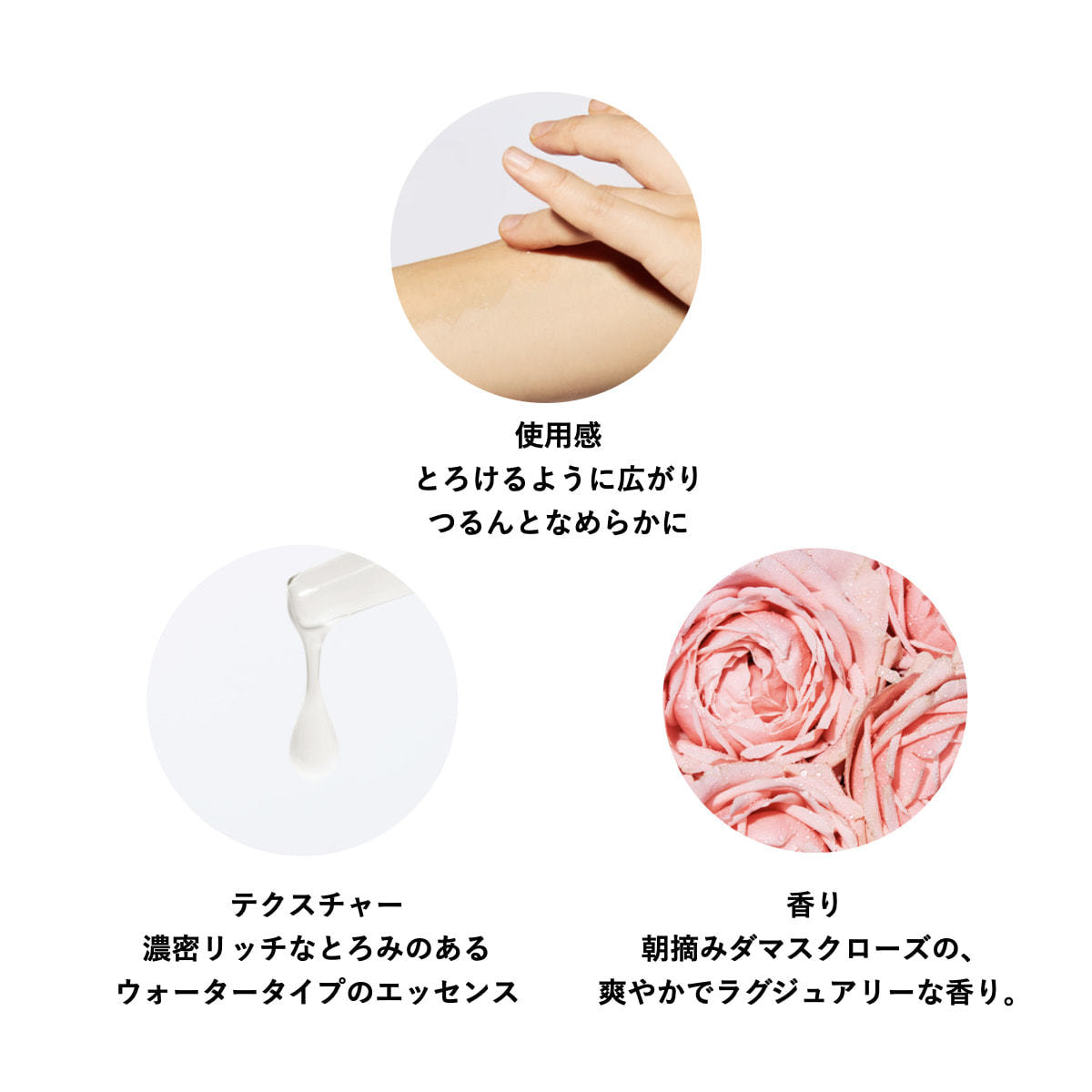 水の代わりに、最高峰と言われるブルガリア産ダマスクローズウォーターをベースにしています。