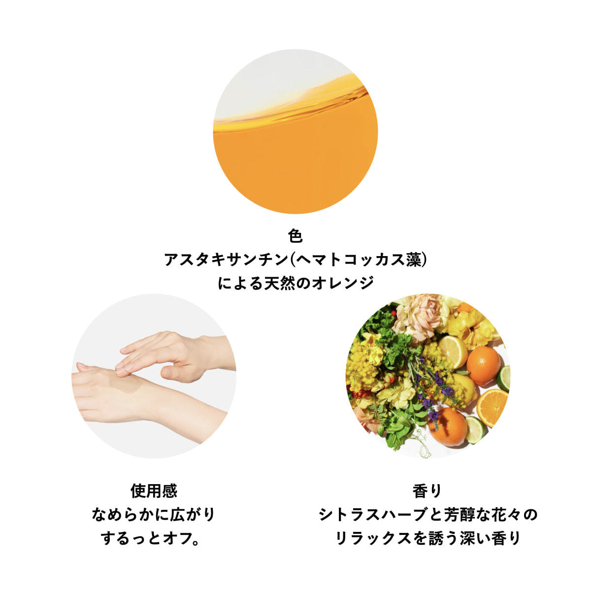 美容成分がたっぷり溶け込んだ植物オイルをベースに、パワフルなエッセンスを高配合。肌本来のコンディションを整えることで、みずみずしく明るい肌を追求しました。