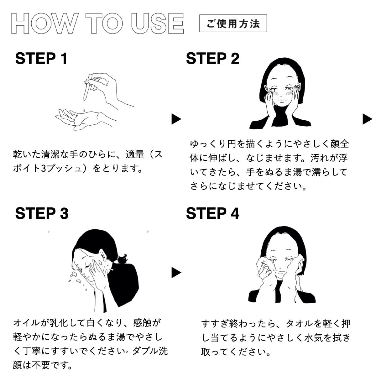 その後、ぬるま湯でよく洗い流してください。ダブル洗顔は不要。