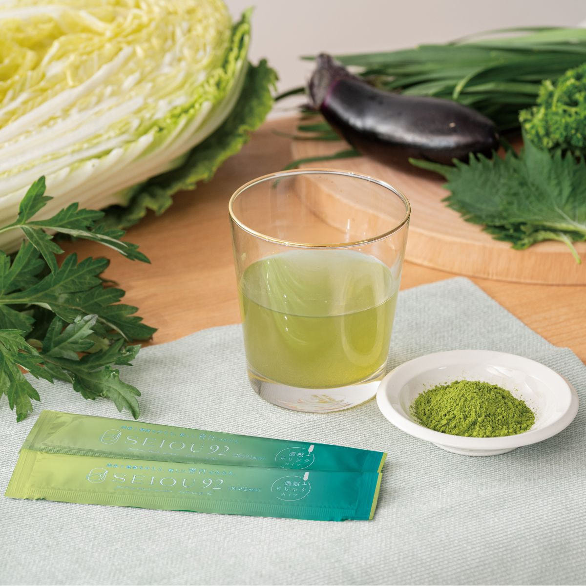 青じそ、キャベツ、小松菜、ホウレンソウなど14種類の野菜エキスを凝縮。
