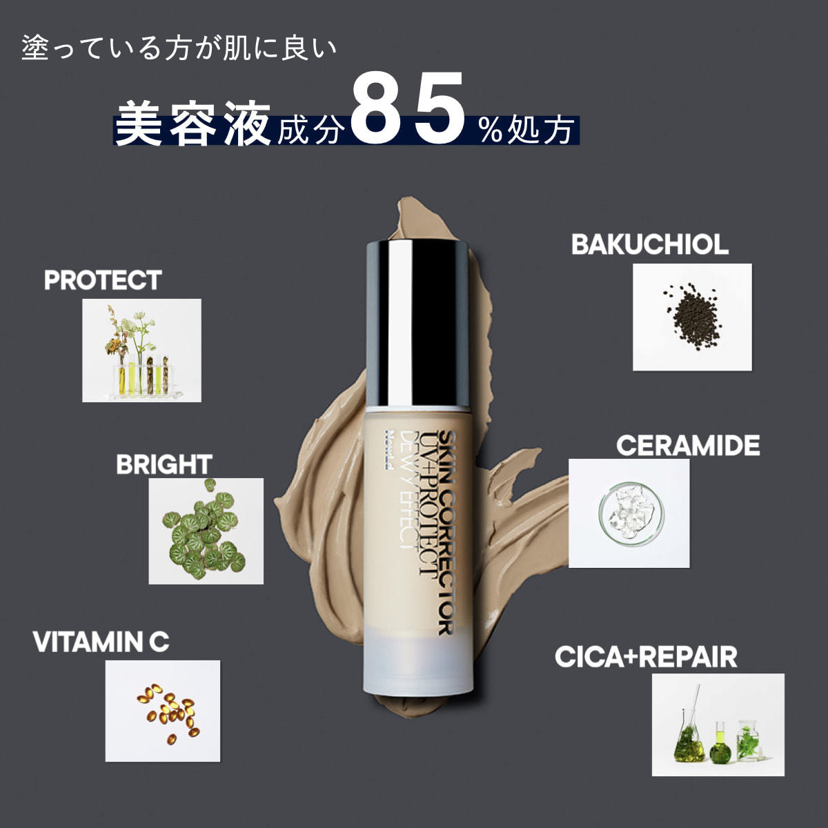 1本で「 UVカット+肌色補正+スキンケア効果 」を備えた多機能UVセラム。