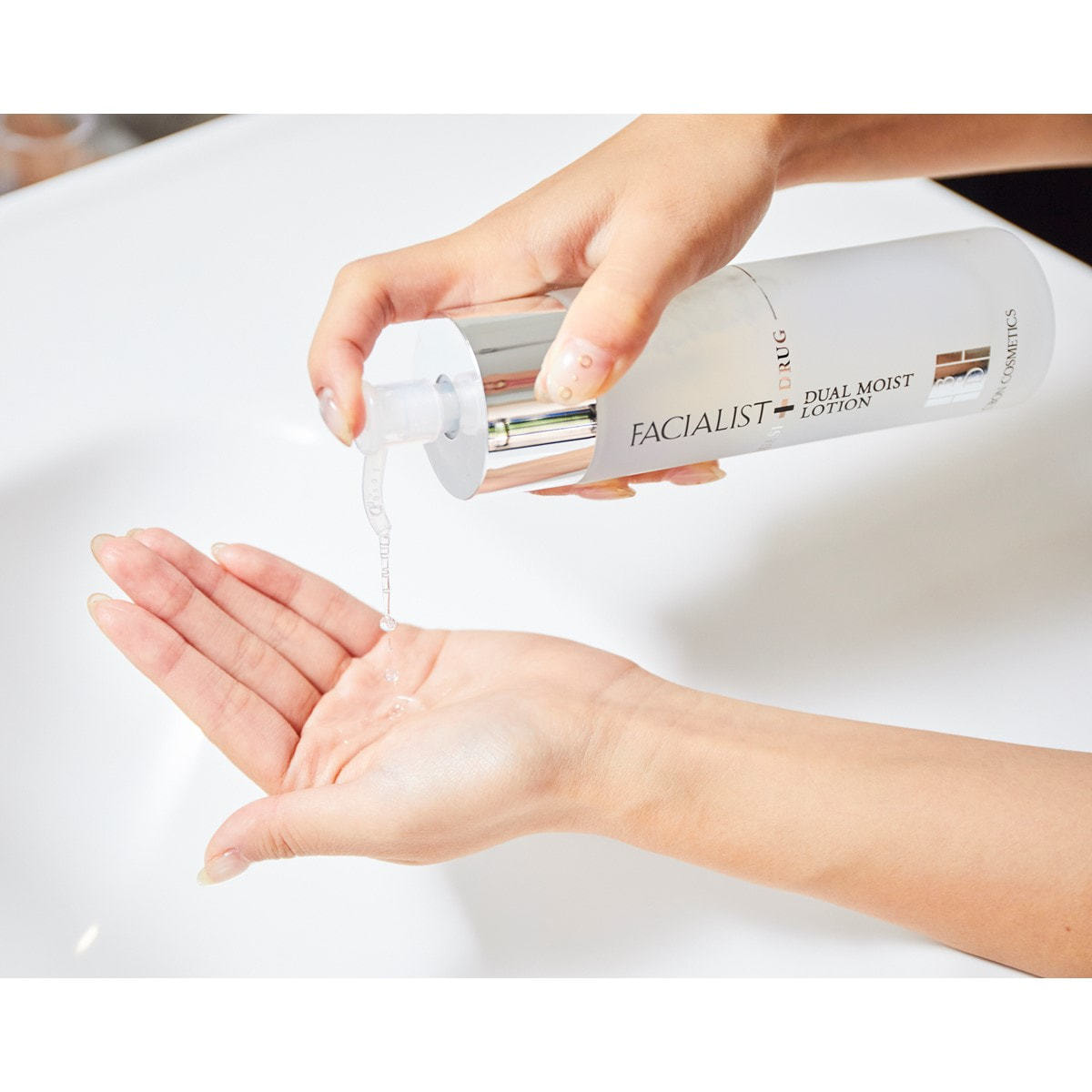 ②~③を肌が手のひらに吸いつき、しっとりするまで繰り返します。