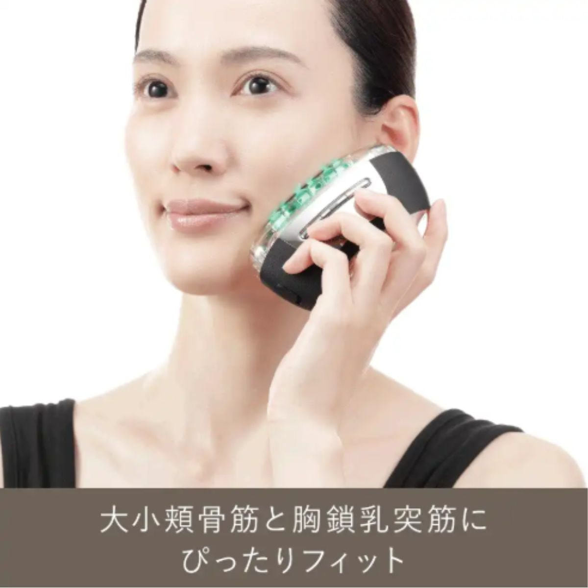 ・人間工学に基づいて導き出された特殊形状と7つのワイドリフトヘッドが、「リフト筋」である大小頬骨筋や、美しいフェイスラインの要である胸鎖乳突筋にぴったりフィットします。